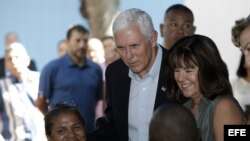 Pence habló con migrantes venezolanos antes de concluir su visita a la ciudad colombiana de Cartagena, primera escala de una gira por América Latina.